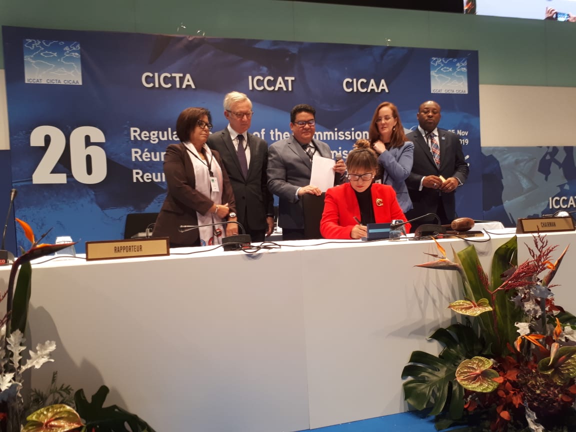 كذلك تم التوقيع على البروتوكول الخاص باتفاقية (إكات)، الذي هو بمثابة القانون الأساسي لـمنظمة “إكات” ، أما بالنسبة لـ”تون أوبيز” المتوفر بالمحيط الأطلسي والجنوب، وهذا النوع، فقد كان أعضاء المنظمة يريدون التخفيظ من كميته، لكن بعدما تم الدفاع عن هذه الكمية المحددة من طرف لـ”إكات”، فقد استطاع المغرب الحفاظ على هذه الكمية كما هي.