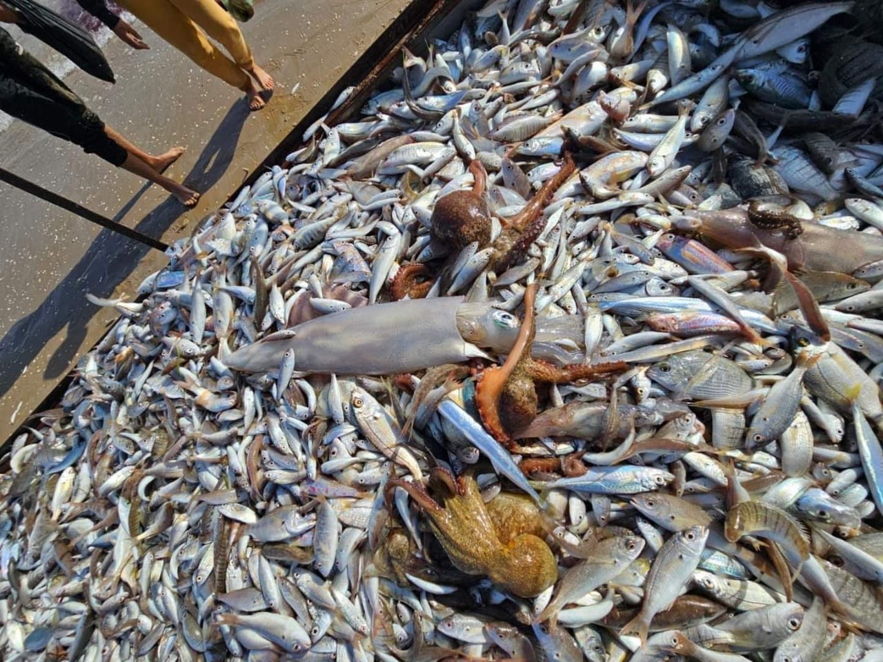 وظهرت من جديد صور لصيد هذه الأسماك بدون احترام المعايير القانونية باحد الشواطئ المحلية للناظور، مع استعمال شبابيك محرمة أصلا تجرف الصغير والكبير حسب الصور التي حصلت عليها “البحر24”.