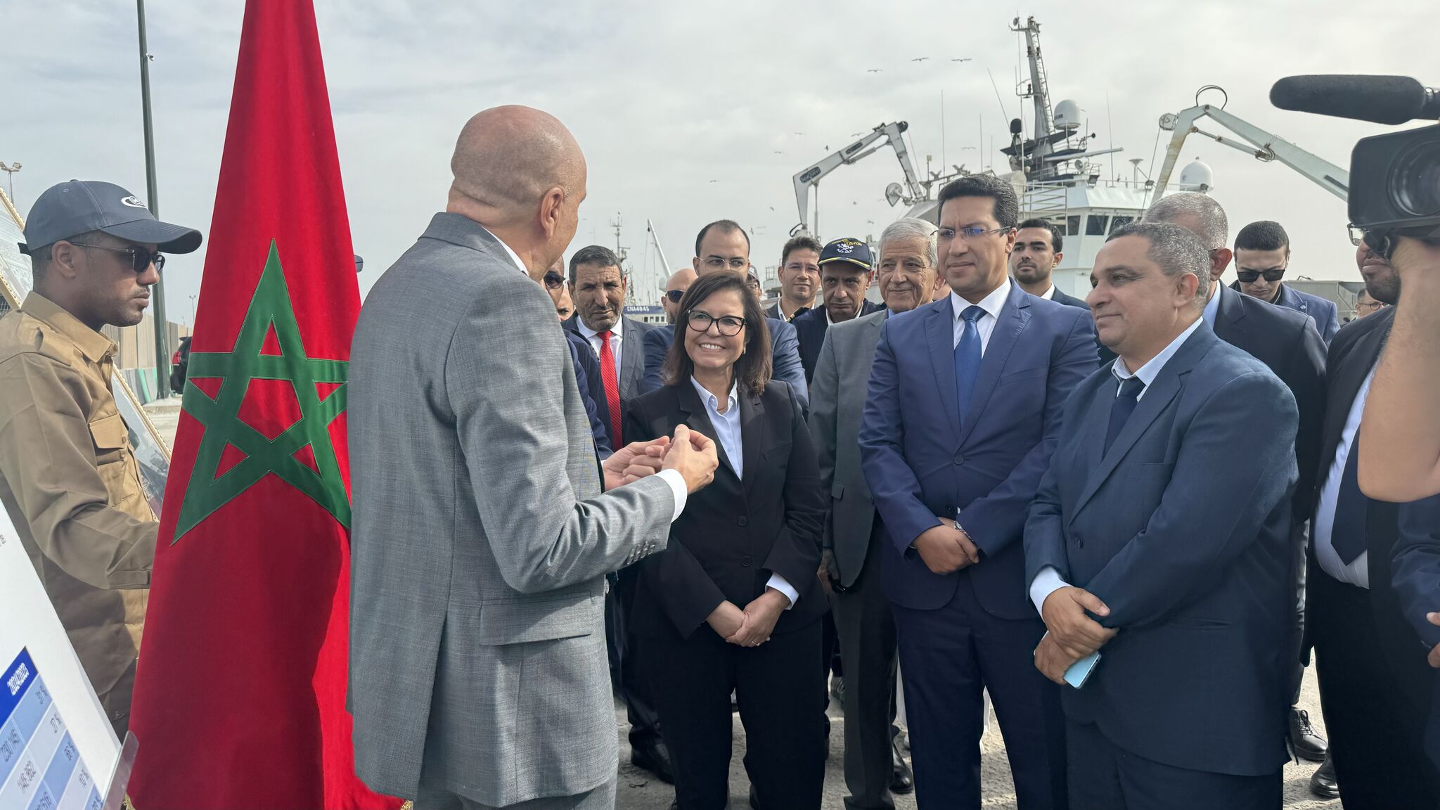 شملت الزيارة ميناء الصيد بالداخلة، حيث تفقدت عمليات تفريغ مصطادات بواخر الصيد المجهزة بتقنيات المياه المبردة، التي تساهم في تزويد الوحدات الصناعية المحلية بالمواد الخام، ما يدعم سلسلة الإنتاج ورفع جودتها.