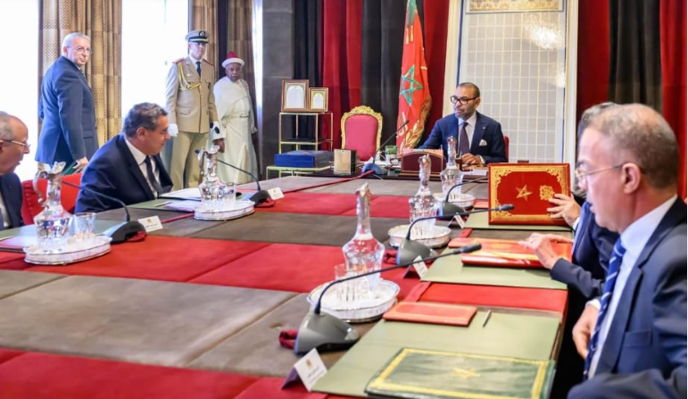 ترأس صاحب الجلالة الملك محمد السادس، نصره الله، اليوم الاثنين بالقصر الملكي بالرباط، مجلسا وزاريا، خصص للمصادقة على مشروع قانون تنظيمي، وأربعة مشاريع مراسيم تهم المجال العسكري، وعلى عدد من الاتفاقيات الدولية، إضافة إلى مقترحات تعيينات في المناصب العليا.