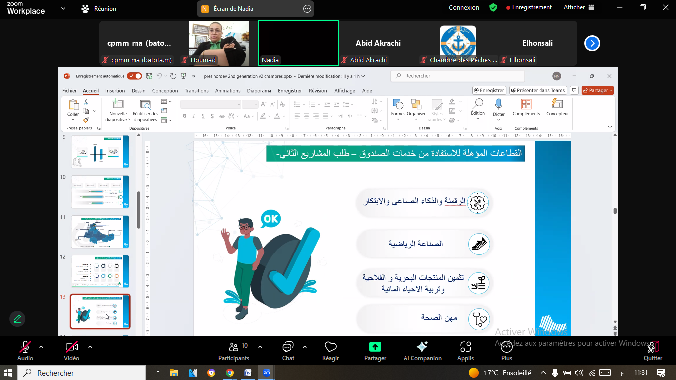 في خطوة استراتيجية تعكس الالتزام بدعم الاستثمار وتحفيز التنمية الجهوية المستدامة، نظمت غرفة الصيد البحري المتوسطية لقاءً عن بعد صباح اليوم الأربعاء 14 ماي، خُصص لبسط وتقديم صندوق “نورديف” للشمال لفائدة المهنيين العاملين في قطاع الصيد البحري وتربية الأحياء المائية. اللقاء شهد مشاركة واسعة من أعضاء وأطر الغرفة ومهنيين ورؤساء جمعيات وتعاونيات من مختلف أقاليم الجهة، إلى جانب ممثلين عن مجلس جهة طنجة تطوان الحسيمة.