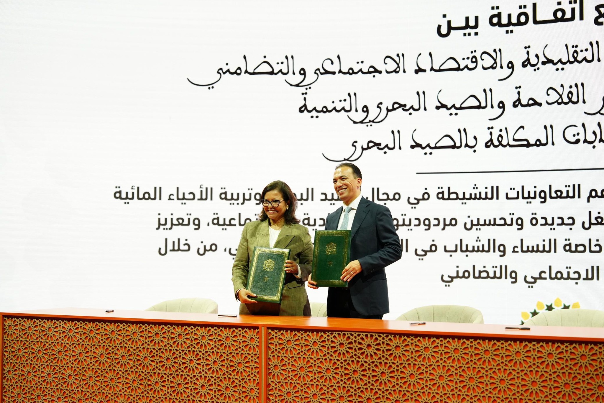 وتتعلق هذه الاتفاقية بوضع إطار للتعاون والشراكة بين كتابتي الدولة من أجل بلورة مشاريع وتنسيق تنفيذ برامج لمواكبة ودعم التعاونيات النشيطة في مجال الصيد البحري وتربية الأحياء المائية البحرية، وتطوير دورها التنموي، بتوفير مناصب شغل جديدة وتحسين مردوديتها الاقتصادية والاجتماعية، وتعزيز الإدماج الاجتماعي والاقتصادي للفئات الهشة، وخاصة النساء والشباب في الوسط القروي والساحلي، من خلال الاقتصاد الاجتماعي والتضامني.
