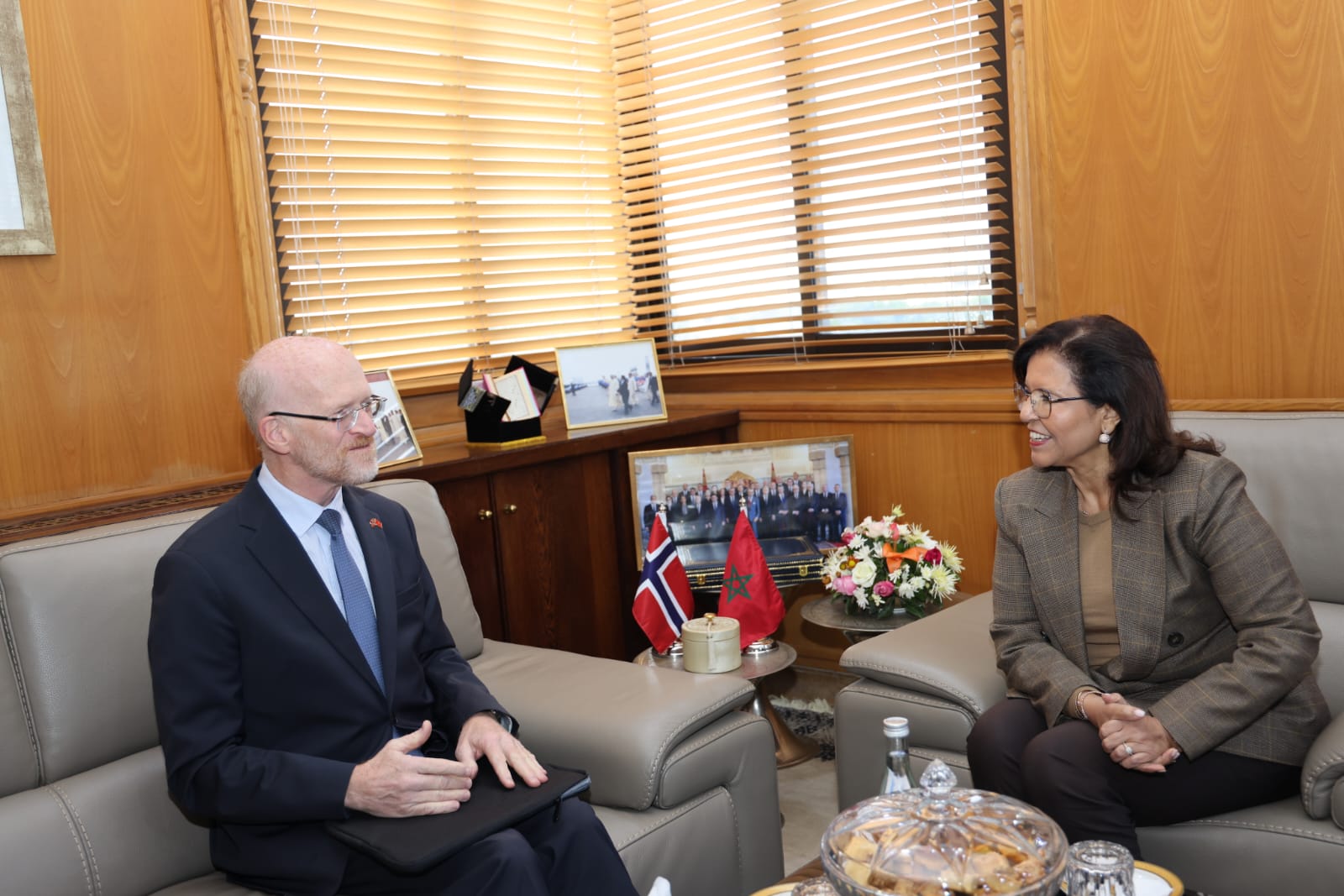 أجرت زكية الدريوش، كاتبة الدولة لدى المكلفة بالصيد البحري، اليوم الثلاثاء 16 دجنبر بالرباط، مباحثات ثنائية مع هيلغه أندرياس سيلاند، السفير المفوض فوق العادة وممثل مملكة النرويج لدى المملكة المغربية، خُصصت لبحث سبل تعزيز التعاون الثنائي في مجال الصيد البحري.