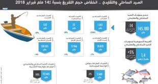 أفادت إحصائيات صادرة عن المكتب الوطني للصيد بأن حجم منتوجات الصيد الساحلي والتقليدي التي جرى تفريغها بلغت نحو 145 ألف و180 طن متم شهر فبراير 2018، وذلك بانخفاض قدره 14 في المائة مقارنة مع نفس الفترة من السنة الماضية. وحسب المكتب الوطني للصيد البحري، تقدر القيمة التسويقية لمنتوجات الصيد الساحلي …