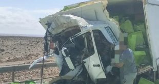 توفي سائق شاحنة مخصصة لنقل الأسماك، صباح الخميس، في حادثة مأساوية على الطريق السريع الرابط بين أكادير والعيون، بالقرب من السد القضائي المعروف بـ “الواد الواعر”، شمال مدينة طرفاية. وأفادت مصادر محلية أن الحادثة وقعت عندما صدم شاحنة أخرى من الخلف الشاحنة المخصصة لنقل الأسماك، في ظروف لا تزال مجهولة، …