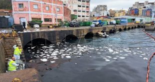 أعلنت سلطات ميناء سبتة المحتلة أن التسرب الذي حدث في ساعات متأخرة من مساء الثلاثاء، هو الأكبر من نوعه في تاريخ الميناء، فيما تواصل فرق تقنية عمليات تطويق التسرب في أفق السيطرة على الوضع. المصدر: صحيفة الفارو